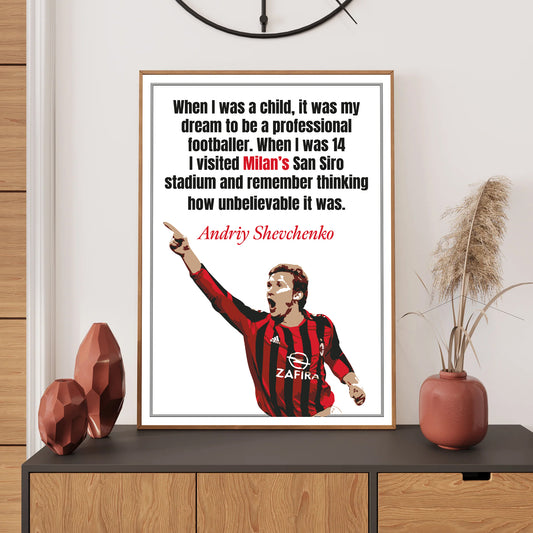 Andriy Shevchenko AC Milan Quote Wall Art Print – Digital Poster | Motivational Football Decor | English & Italian Versions