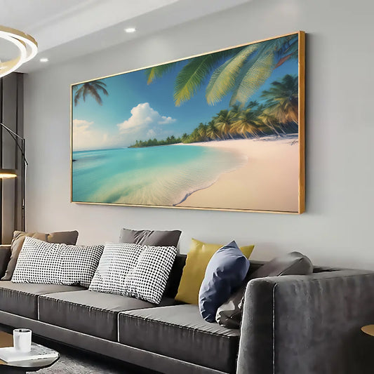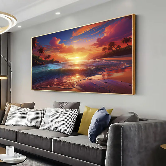 Tropical Beach Artwork with Sunset Wall Art Print – Soothing, Scenic, and Serene Coastal Decor