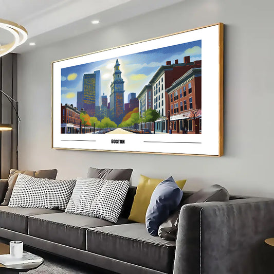 Boston Oil Painting Wall Art Print – Historic Cityscape Digital Download