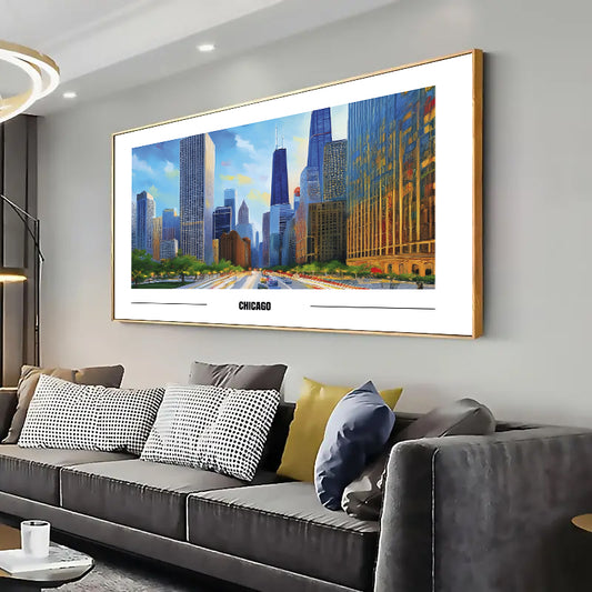 Chicago Oil Painting Wall Art Print – Iconic Skyline Digital Download
