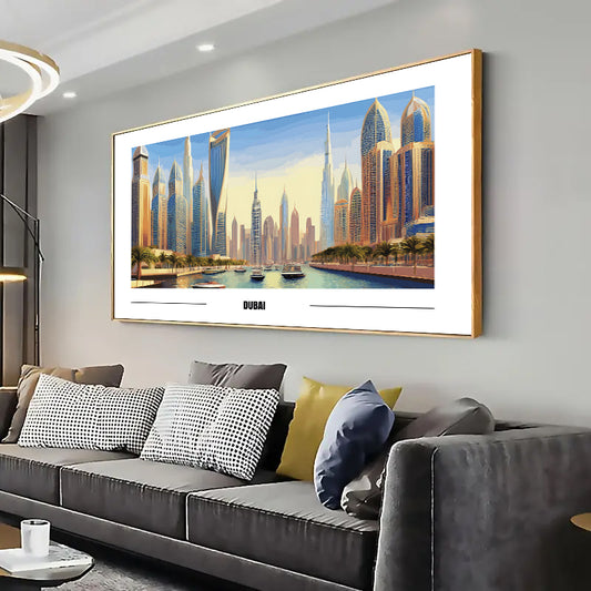Dubai Oil Painting Wall Art Print – Iconic Skyline & Landmark Digital Download